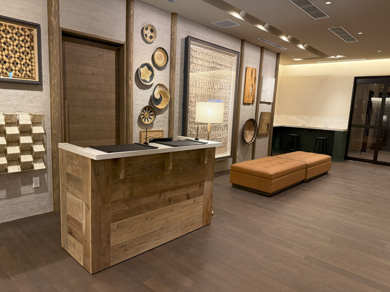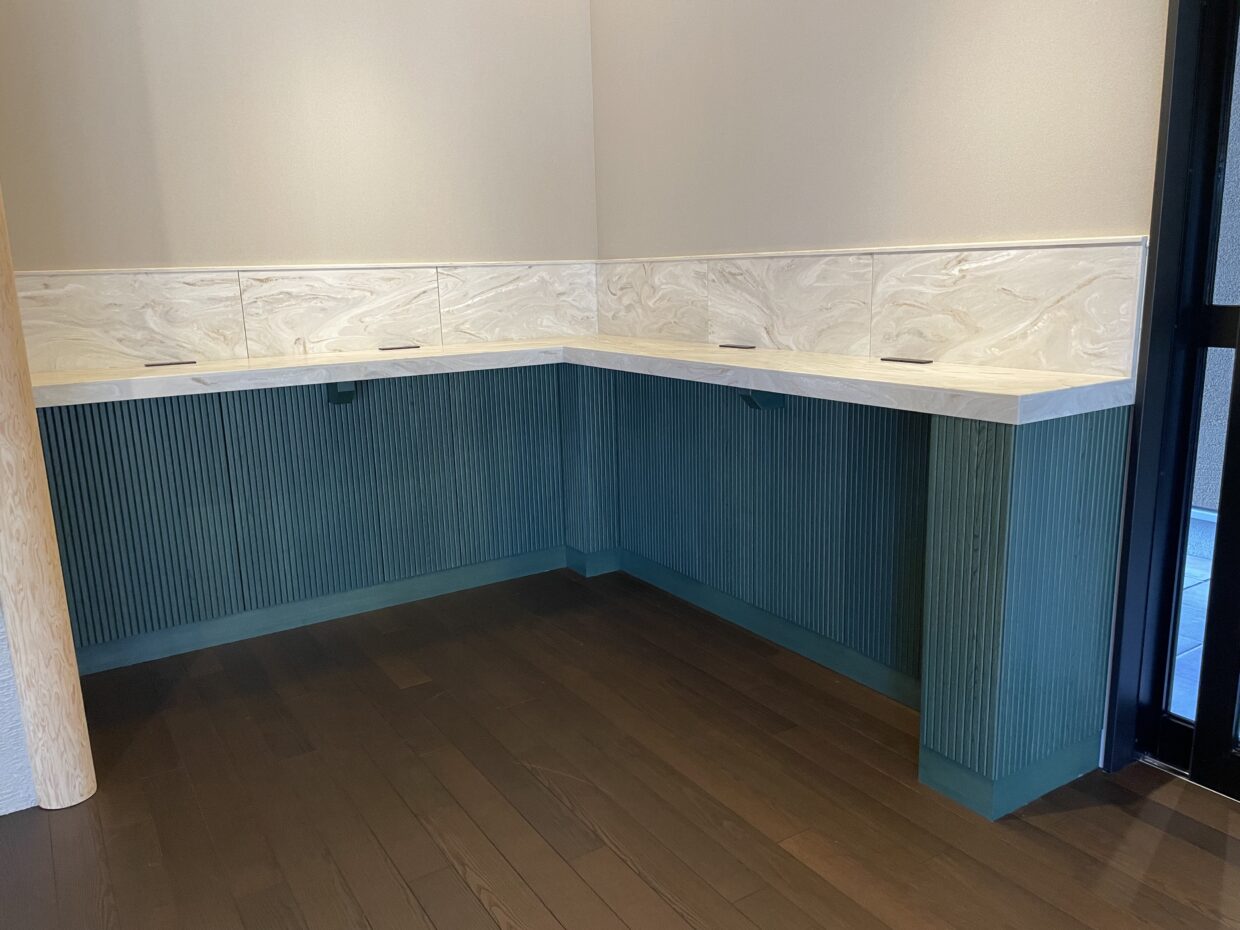- 受付内の家具什器の提案、家具設計、納まりの提案、素材の提案